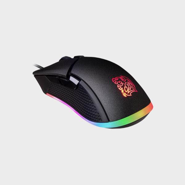 The IRIS Optical RGB Gaming Mouse comes with two-zone 16.8 million of true RGB color and features 9 dynamic lighting effects with unique side aura illumination for enhanced gaming atmosphere. The use of a PMW-3325 gaming grade optical sensor with up to 5000 DPI provides superior accuracy and precision gaming for when you need it most; and is equipped with durable gaming grade switches with a lifespan of up to 20-million clicks for long-lasting gameplay. With a right-handed ergonomic and lightweight design, the IRIS RGB Optical provides long-lasting comfort during periods of long play with additional features such as profiles, macro, lighting effects, colors and button controls customized via software.